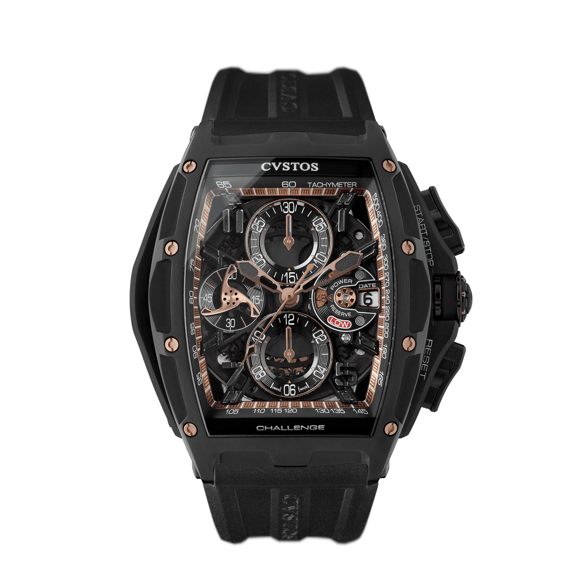 チャレンジ クロノIII-S シリーズは、スーパースポーツカーさながらのラグジュアリーを追求し、飽くなき探求の元フラグシップコレクシ ョンを次なるステージへ昇華しました。疾走感をつきつめた究極の曲線美、メカニックにデザインされたスケルトンの機械部分、また、マルチコンポーネント構造を強調したデザインなど細部に至る までこだわりを見ることができます。モデル名に加えられた“S”は“SPORTY”を意味し、 スタイルやディテールの機能性、個性、革新性をより一層強調しています。ケースデザイ ンは、ケースパーツを細分化し立体的かつスタイリッシュな構造を魅せています。