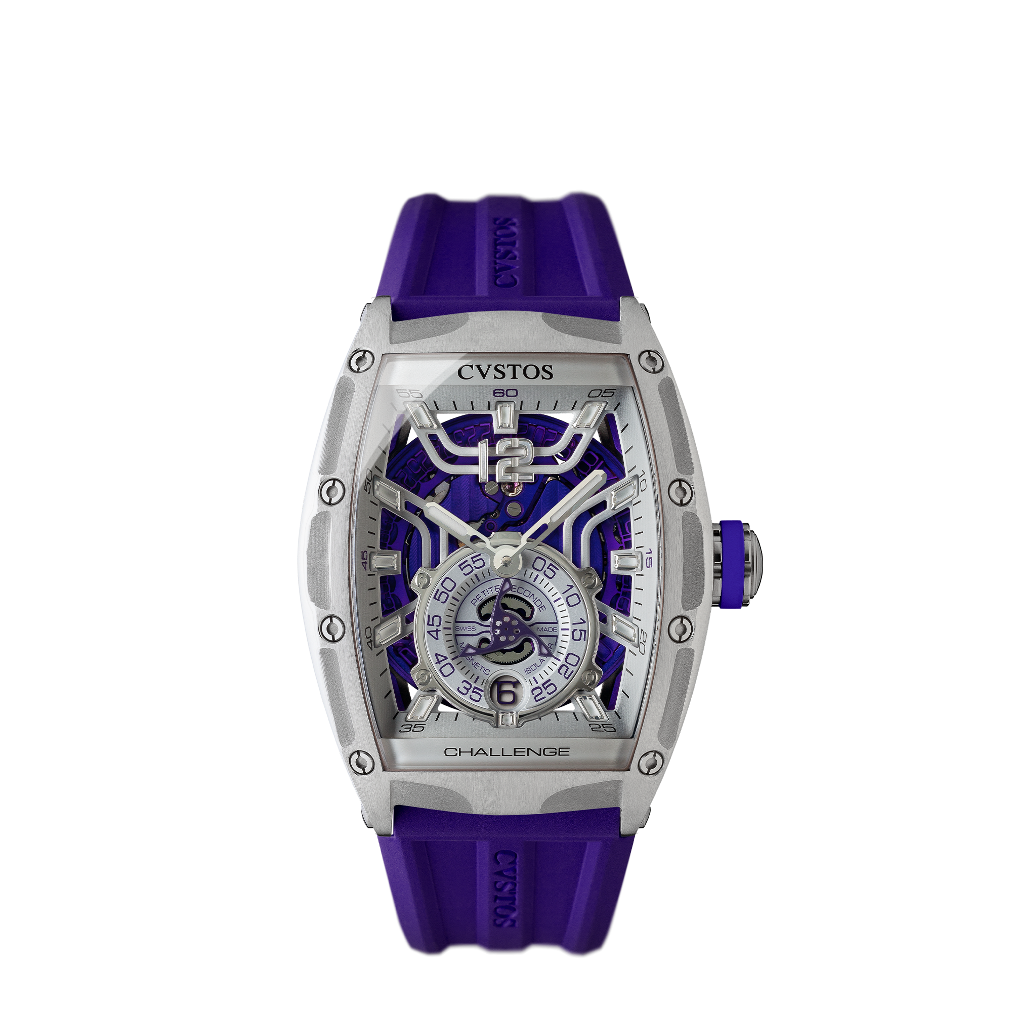 「チャレンジ ジェットライナーⅡ P-S オートマティック」は、モデル名の通り航空機を想起させるシリーズであり、本物の航空機体さながらの構造美や素材を探求し、軽量化を実現したモデルです。6時位置にあるスモールセコンドには、大型タービンを想起させる羽根車が取り付けられ、クストスの根底に宿る機能美が全面に表現されています。またムーブメント内部には、機械式時計にとって宿敵であった“磁力”を使い、技術革新のさらなる追求もなされています。