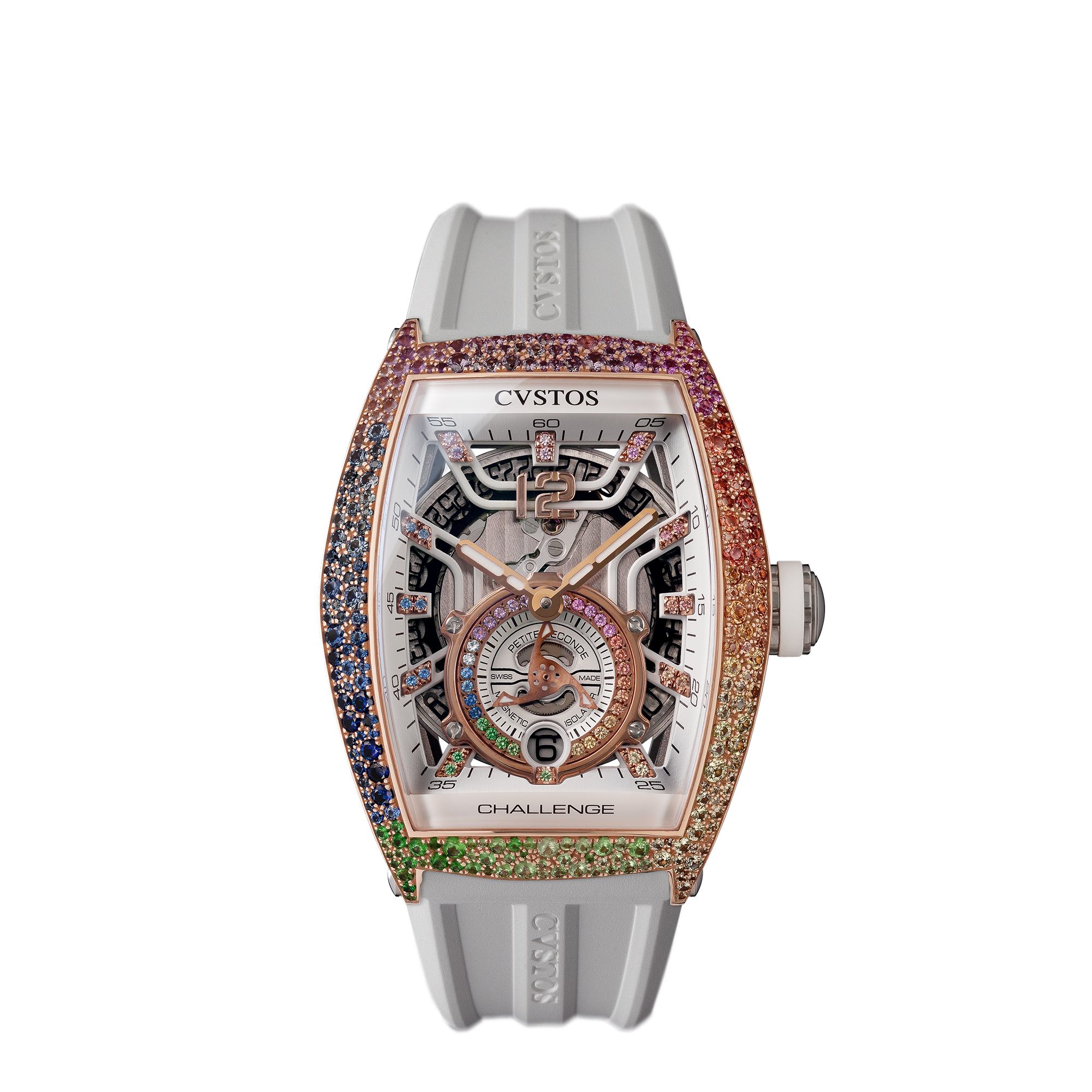 「チャレンジ ジェットライナーⅡ P-S オートマティック」は、モデル名の通り航空機を想起させるシリーズであり、本物の航空機体さながらの構造美や素材を探求し、軽量化を実現したモデルです。6時位置にあるスモールセコンドには、大型タービンを想起させる羽根車が取り付けられ、クストスの根底に宿る機能美が全面に表現されています。またムーブメント内部には、機械式時計にとって宿敵であった“磁力”を使い、技術革新のさらなる追求もなされています。