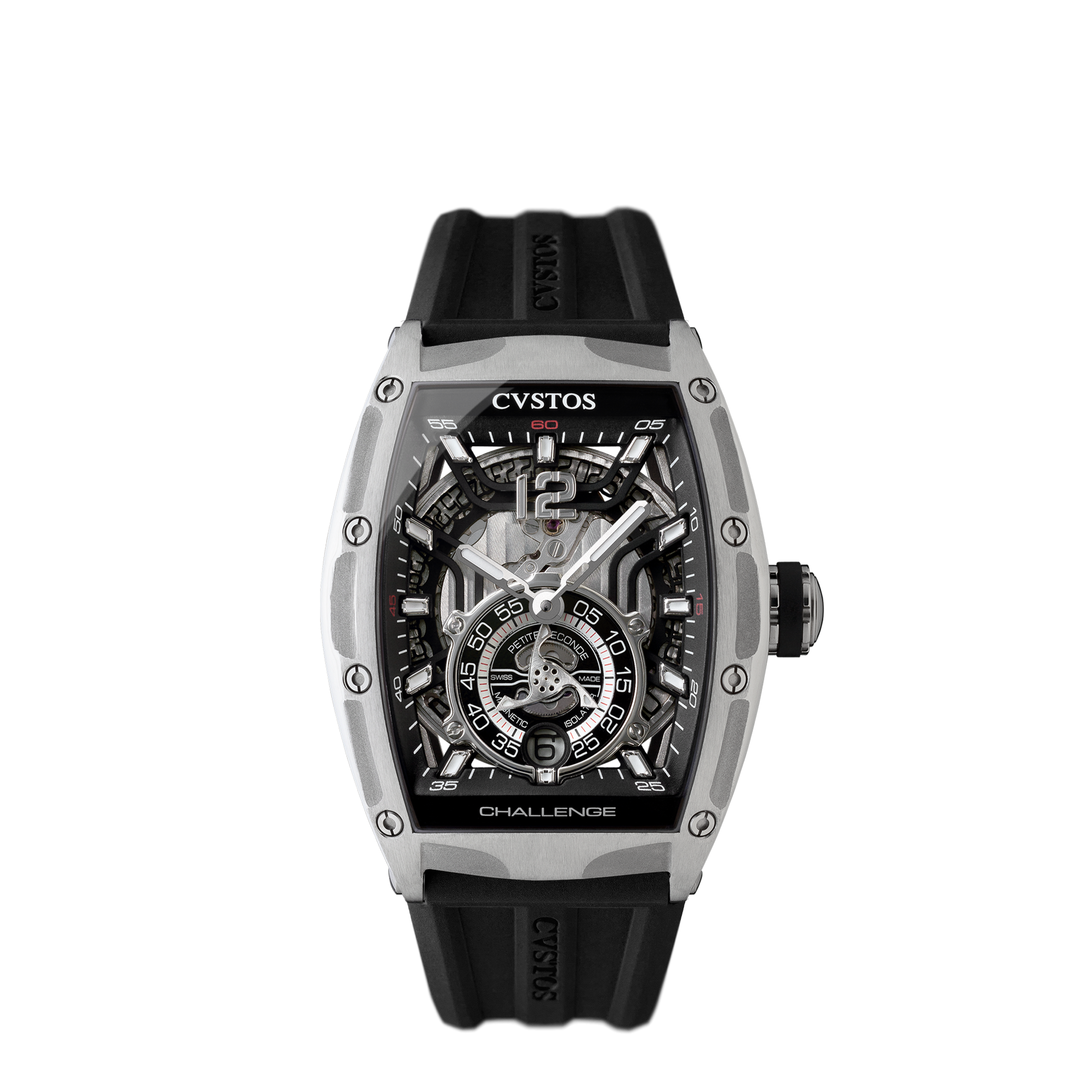 「チャレンジ ジェットライナーⅡ P-S オートマティック」は、モデル名の通り航空機を想起させるシリーズであり、本物の航空機体さながらの構造美や素材を探求し、軽量化を実現したモデルです。6時位置にあるスモールセコンドには、大型タービンを想起させる羽根車が取り付けられ、クストスの根底に宿る機能美が全面に表現されています。またムーブメント内部には、機械式時計にとって宿敵であった“磁力”を使い、技術革新のさらなる追求もなされています。