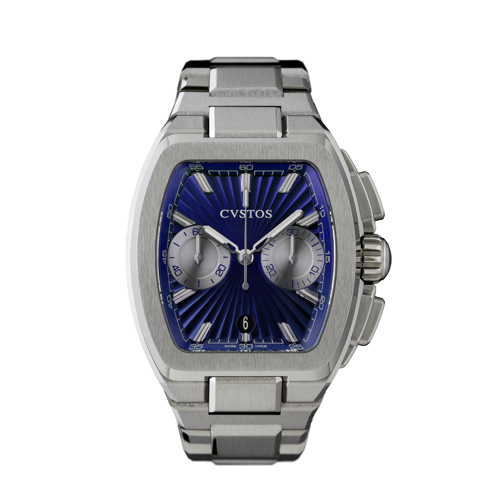 時、分、クロノグラフ秒針、3時位置に30分積算計、9時位置にスモールセコンド