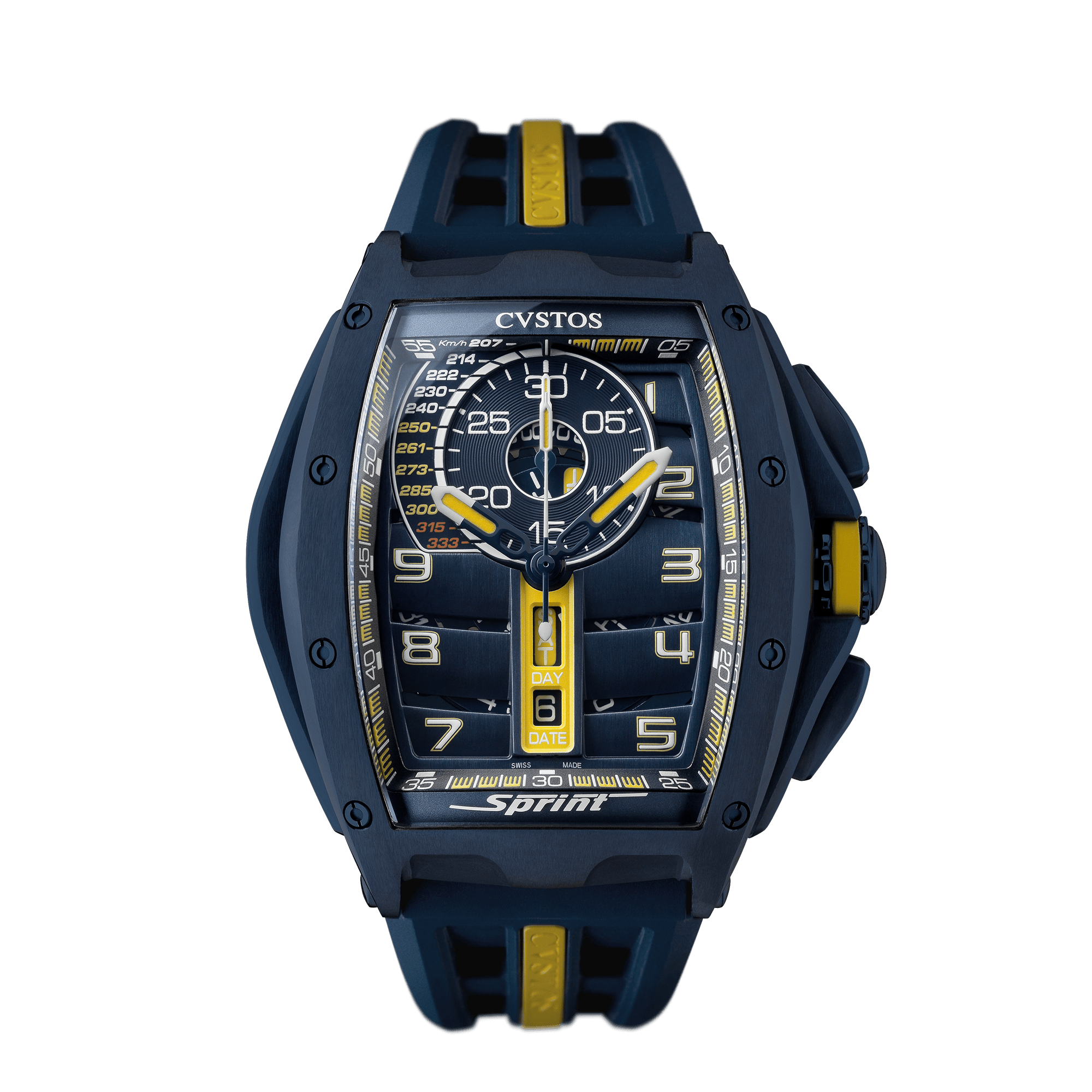 「チャレンジ クロノ スプリント」は、スプリント予選レースが F1 に導入されたことを記念し誕生した 限定モデルです。モータースポーツの世界最高峰を舞台に、クストスはブランドの重要な価値観である 「ハイテク」「スポーティー」「エレガンス」を体現するモデルを開発しました。12 時位置に大振りな モノカウンター(30 分積算計)を備え、レース後にドライバーの平均速度を計測できる革新的なクロノ グラフを搭載しています。スプリント予選はレース形式で行われ、100km の距離を 25 分から 30 分ほどで 完走します。上位のドライバーにはポイントが付与されるシステムとなっており、この予選の結果によ りグランプリでのスターティンググリッドの位置が決まります。新しいシュートアウトレースは、世界 最高のドライバー、マシン、そしてサーキットが集められる F1 によりいっそうのエキサイトメントを加 えています。