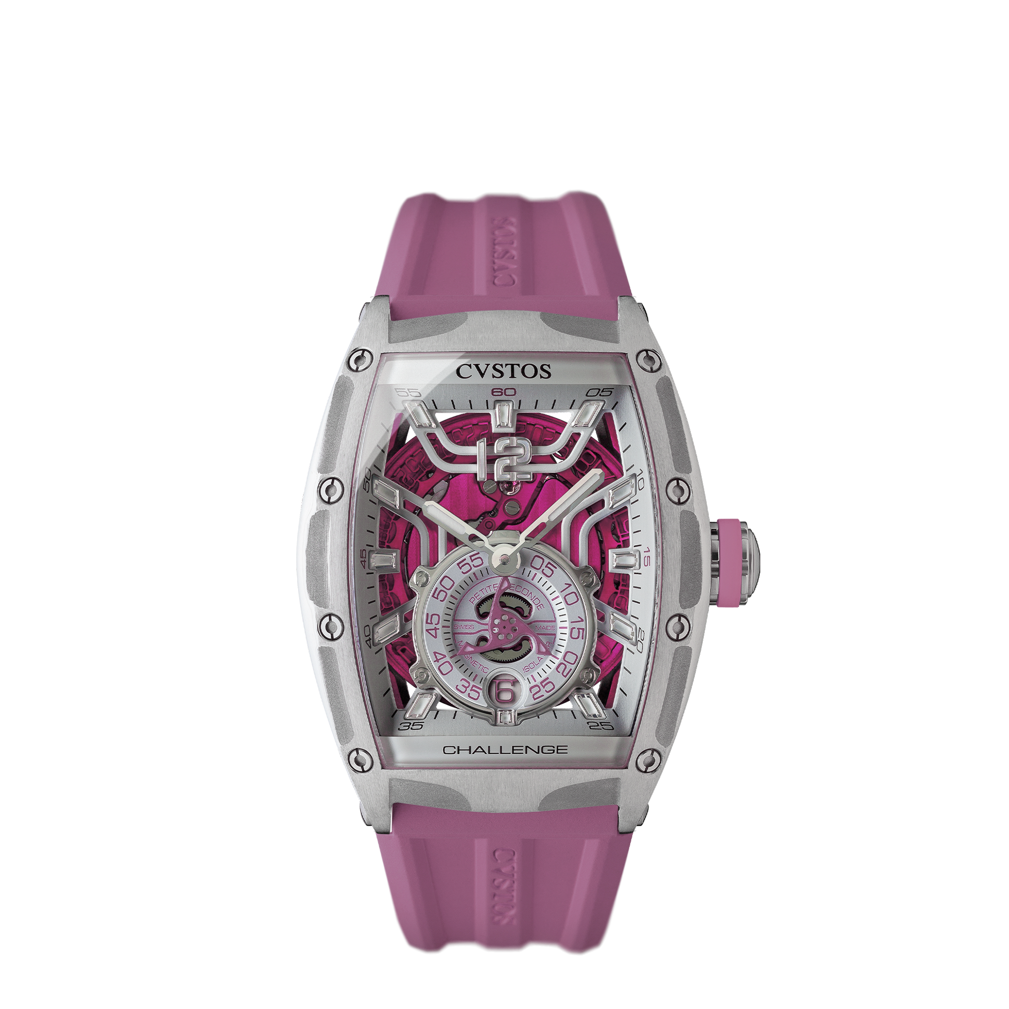 「チャレンジ ジェットライナーⅡ P-S オートマティック」は、モデル名の通り航空機を想起させるシリーズであり、本物の航空機体さながらの構造美や素材を探求し、軽量化を実現したモデルです。6時位置にあるスモールセコンドには、大型タービンを想起させる羽根車が取り付けられ、クストスの根底に宿る機能美が全面に表現されています。またムーブメント内部には、機械式時計にとって宿敵であった“磁力”を使い、技術革新のさらなる追求もなされています。